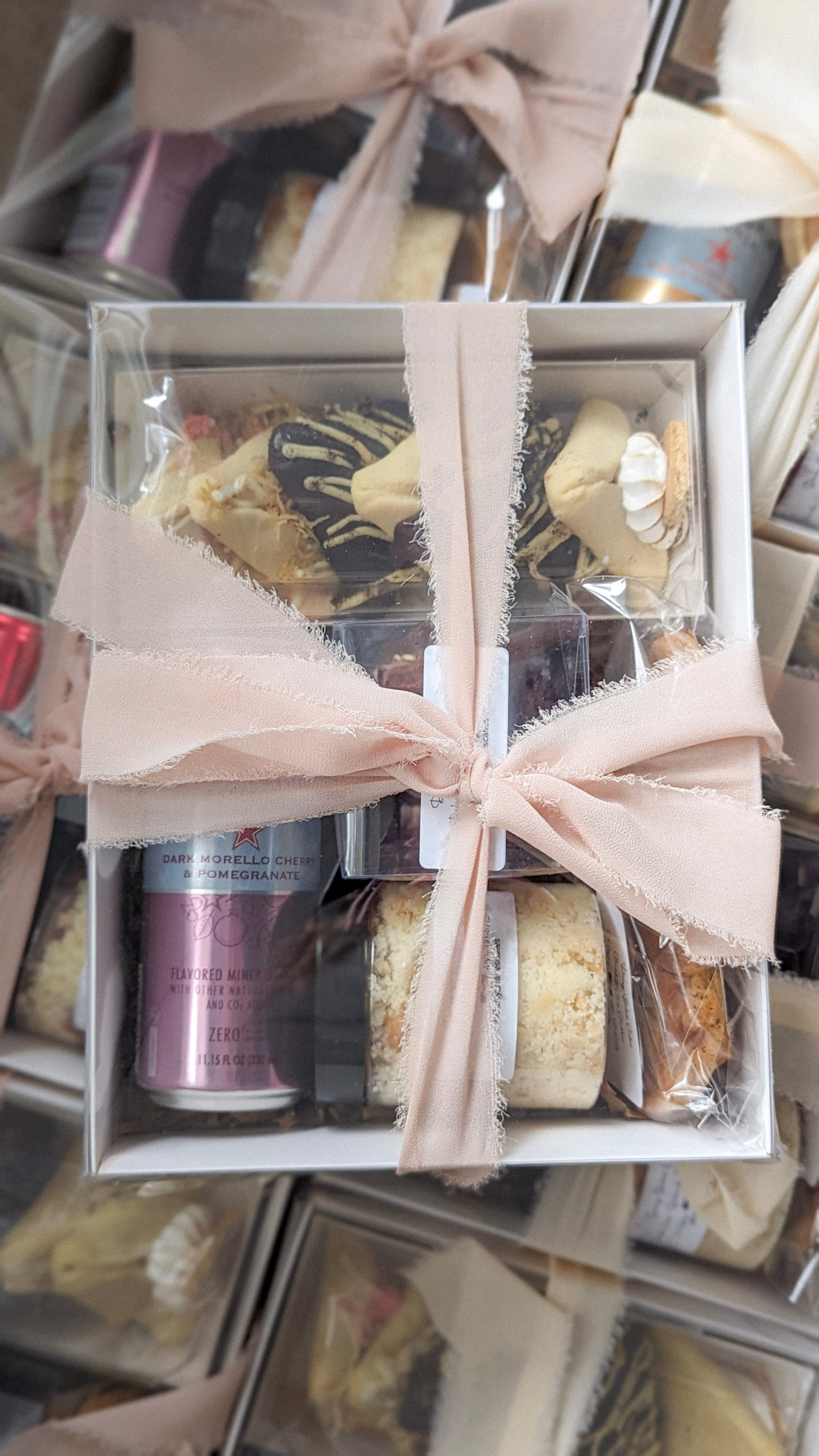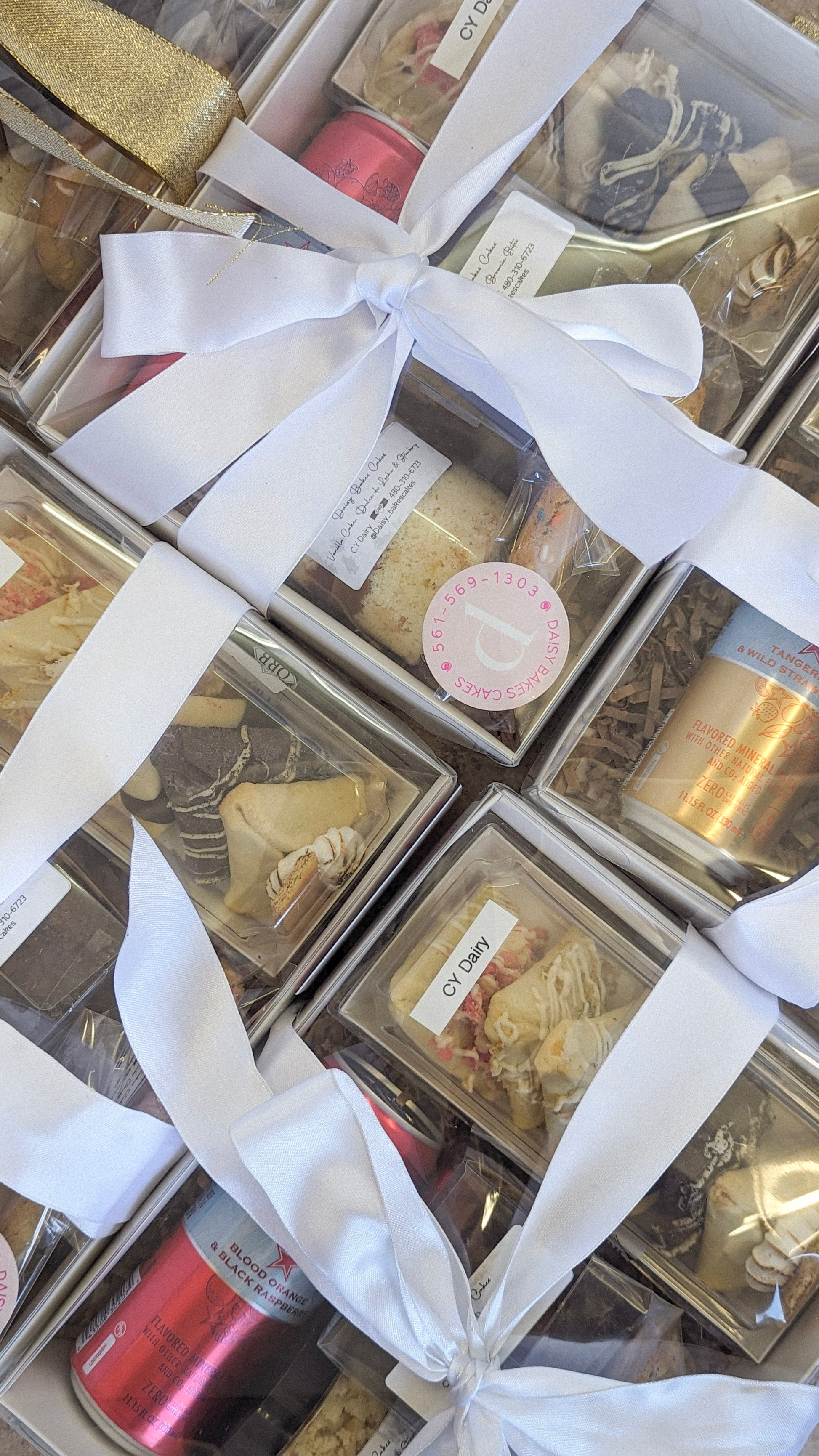 Each box is thoughtfully filled with our signature homemade delicacies and gourmet hamantaschen, artfully arranged and finished with a ribbon for an effortlessly elegant presentation.